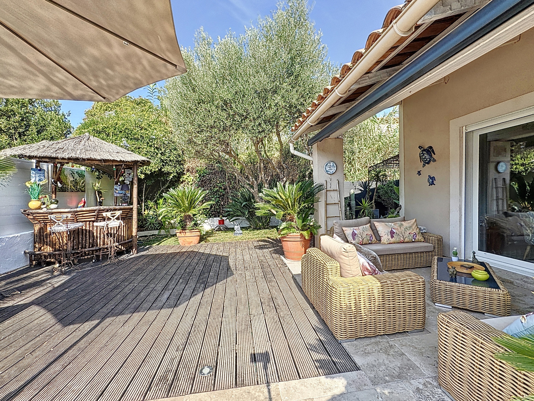 Six-Fours-les-Plages (83140)A 4/5 minutes à pied de la plage, au calme, en fond d'impasse, venir découvrir cette agréable villa climatisée de 138m² hab. (101m² loi Carrez) sur 400m² de terrain clos et arboré. Le niveau principal accueille un confortable séjour / cuisine prolongé d'un salon pour une superficie totale de 52m² donnant sur une agréable terrasse et l'espace piscine, à l'abri des regards, ainsi qu'une chambre, une salle de douche et un wc. A l'étage, une chambre double avec salle de douche / wc privatifs et une autre pièce pouvant servir de chambre, bureau ou dressing, à votre convenance. Un garage de 18m², aménagé en buanderie et dressing, complète l'ensemble. A voir sans tarder!