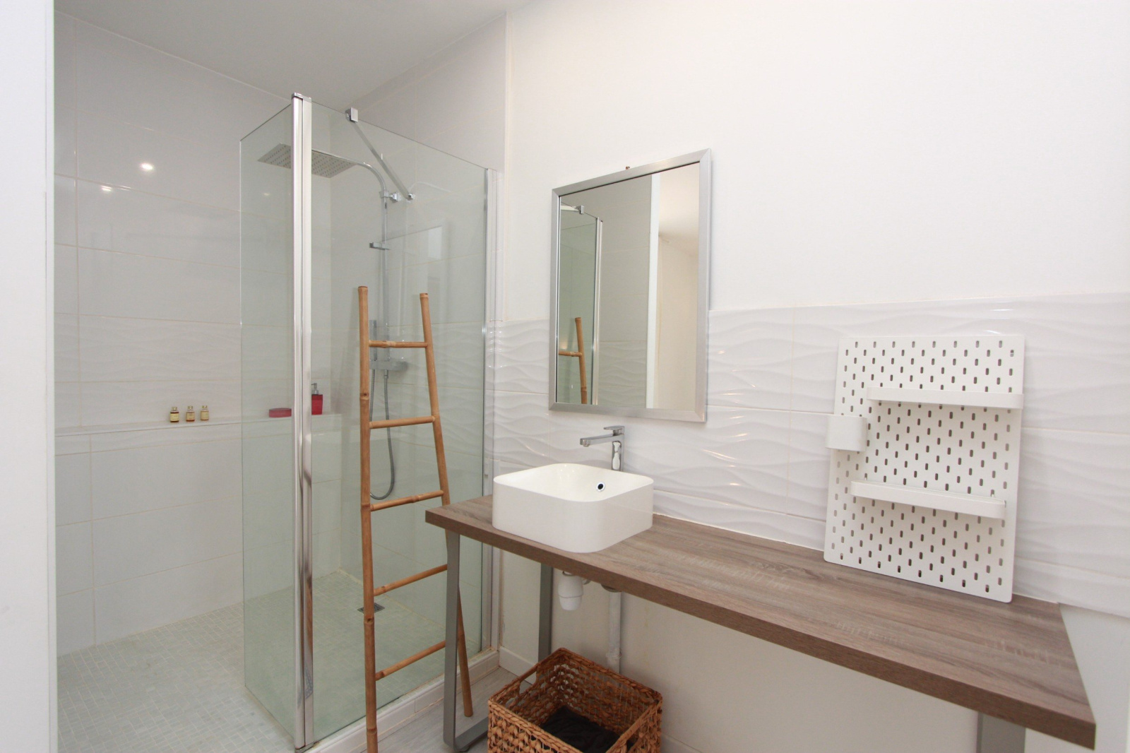 LE BRUSC, à pied du port, des commerces et de la mer, appartement type 3 entièrement rénové de 70 m² situé au 1er et dernier étage d'une maison au charme des années 1950. Il se compose d'un double séjour salon avec cuisine ouverte équipée de 38 m² donnant sur une terrasse Sud de 10 m², 2 chambres dont une avec salle de douche privative. Rare, à visiter rapidement!