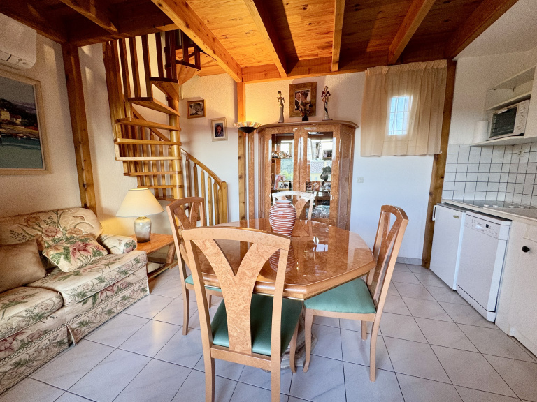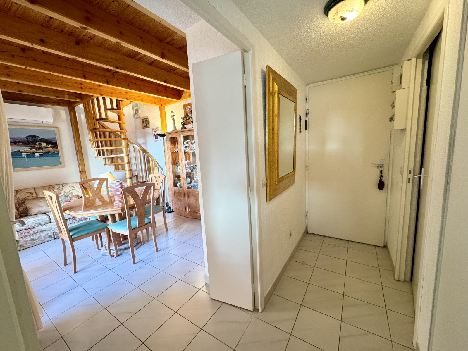 Dans une résidence de standing sécurisée avec piscine, à pied du port et de la mer, vous serez séduits par cet appartement T3 de 53 m² habitables (33 m² carrez) en duplex. Situé au premier et dernier étage, vous apprécierez sa vue dégagée sans vis-à-vis. Il se compose d'une pièce principale donnant sur une terrasse exposée Sud-Ouest, une chambre et salle de bains. A l'étage, une mezzanine de 20 m² à usage de chambre, de salle de jeux ou de bureau. Un parking privatif complète l'ensemble. Rare sur le secteur!