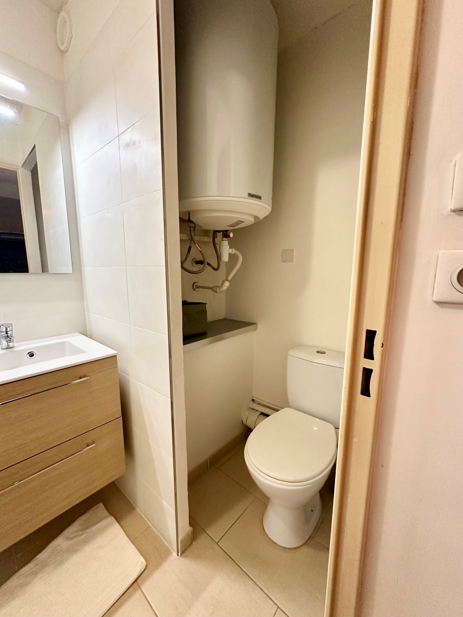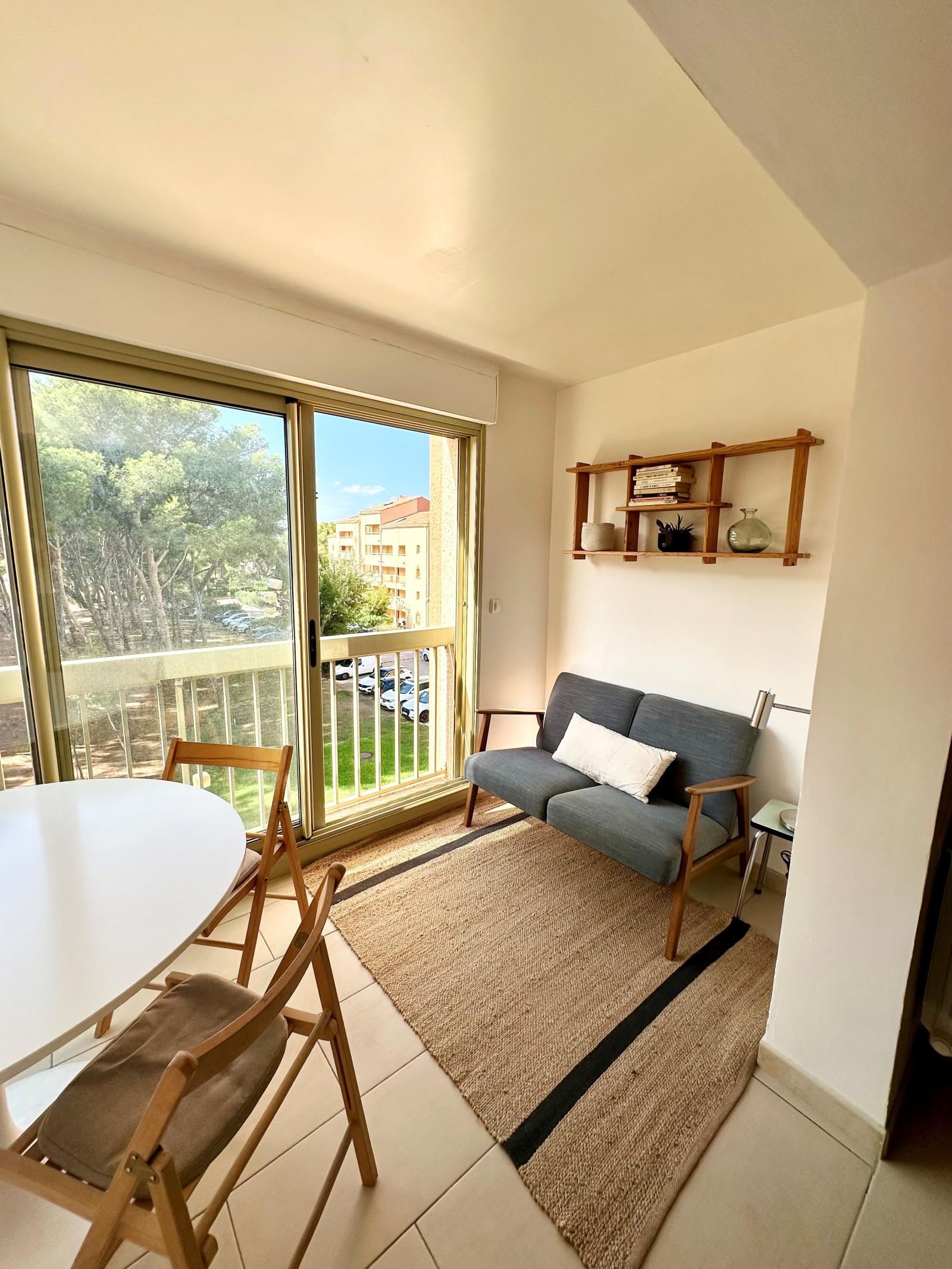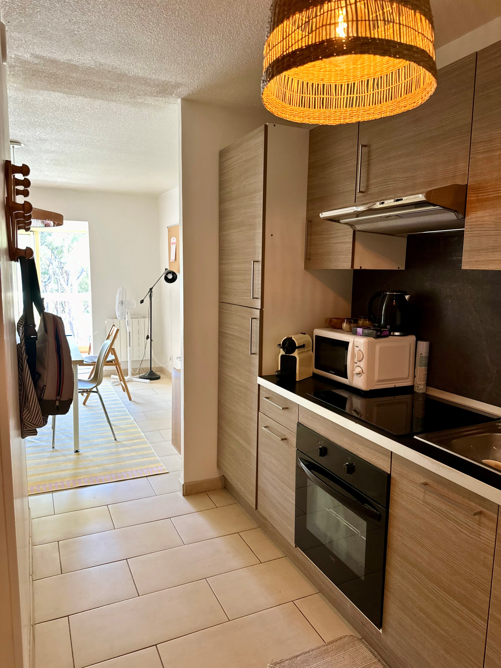 A quelques minutes à pied des plages et des commerces, dans copropriété bien entretenue avec piscine et tennis mais aux charges modérées (67€/mois eau froide incluse), venez découvrir ce lumineux T1 rénové de 28m² hab. (22m² Loi Carrez) exposé Sud, situé au troisième étage avec ascenseur. Il se compose d'une entrée / coin cuisine équipée, séjour avec placard prolongé par une terrasse fermée bénéficiant d'une agréable vue pinède, salle de douche et wc. Vastes parkings collectifs fermés permettant un stationnement aisé. Idéal pied à terre, investissement locatif ou première acquisition. Cet appartement peut être vendu avec ou sans locataire, selon votre projet. A voir sans tarder !