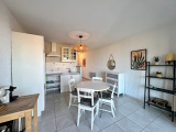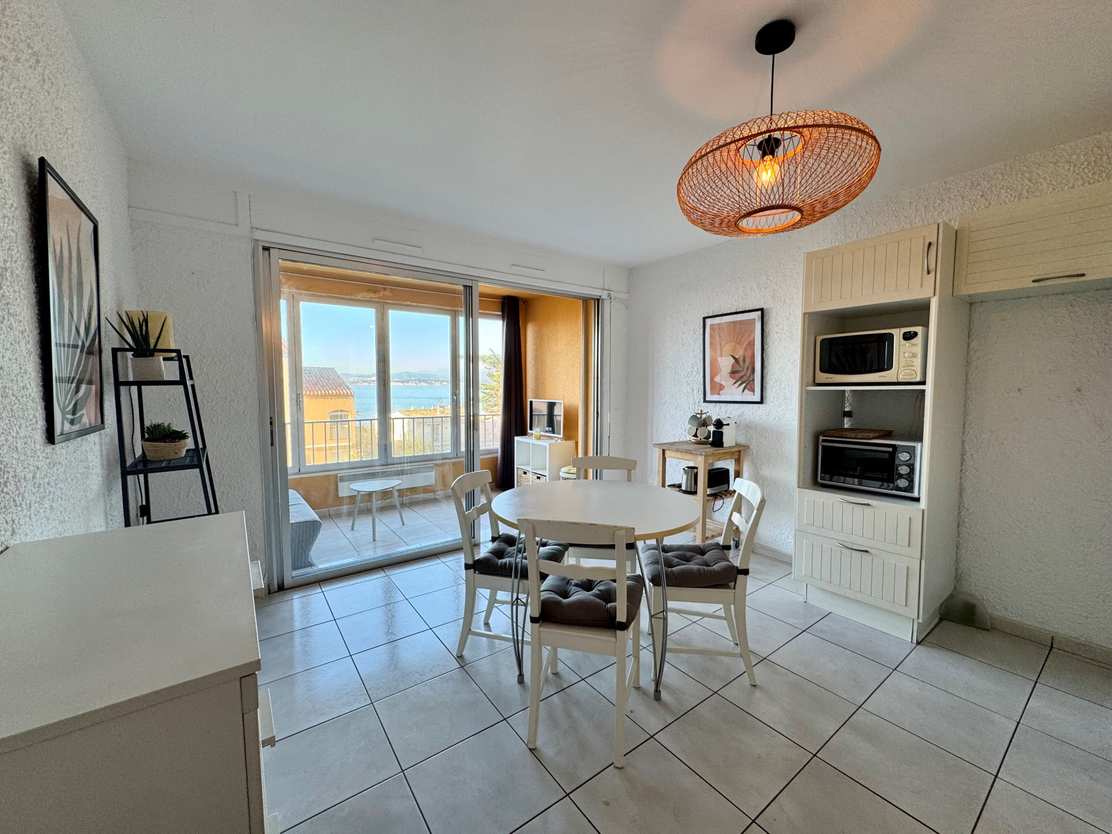 EXCLUSIVITE - LE BRUSC - A proximité immédiate de la plage et du port, bel appartement T2 rénové de 31m² hab. vendu entièrement meublé. Il se compose d'un hall d'entrée avec placard, séjour / coin cuisine équipée donnant sur loggia fermée de 7m² avec vue mer partielle, chambrette avec placard, salle de douche et wc. Une cave et un parking privatif en sous-sol complètent l'ensemble.