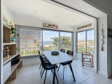 A proximité immédiate de la plage et des commerces, avec une vraie vue mer, venez découvir ce bel appartement d'une superficie de 65m² hab. (55m² Loi Carrez), situé en dernier étage, complètement rénové avec des matériaux de qualité. Il se compose d'un séjour avec cuisine équipée semi-ouverte, dégagement avec placard, salle de douche (avec fenêtre), et wc indépendant. A l'étage, une grande chambre avec placard; bureau ou chambre d'appoint en mezzanine. Une cave et un parking privatif en sous-sol complètent ce bien. IdéaI aussi bien en résidence principale que secondaire. Aucun travaux à prévoir ! Une visite s'impose !