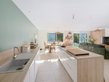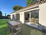 Sur les hauteurs du Brusc dans un environnement calme, nous vous proposons à la vente une villa de plain-pied hors lotissement, récente année 2024, sur un terrain de 633 m². Dès l'entrée vous serez séduit par la décoration et la qualité des matériaux. La cuisine entièrement équipée (Four, refrigérateur congélateur, lave-vaisselle, induction avec hotte intégrée) s'ouvre sur le séjour lumineux coté sud, une buanderie et un WC visiteur complètent la partie jour. L'espace nuit comprend une suite parentale avec dressing et salle de douche, une salle de bain avec WC et 2 chambres. Prestations : climatisation gainable, poêle haut de gamme mixte bois et granules, baies en aluminium et fenêtres en PVC double vitrage, sols en carrelage, portail électrique ... Plage et port du Brusc à moins de 20 minutes à pieds! Apercu mer du terrain. Cette maison très agréable et chaleureuse réunie tout le confort actuel pour en faire sa résidence principale, une visite s'impose!