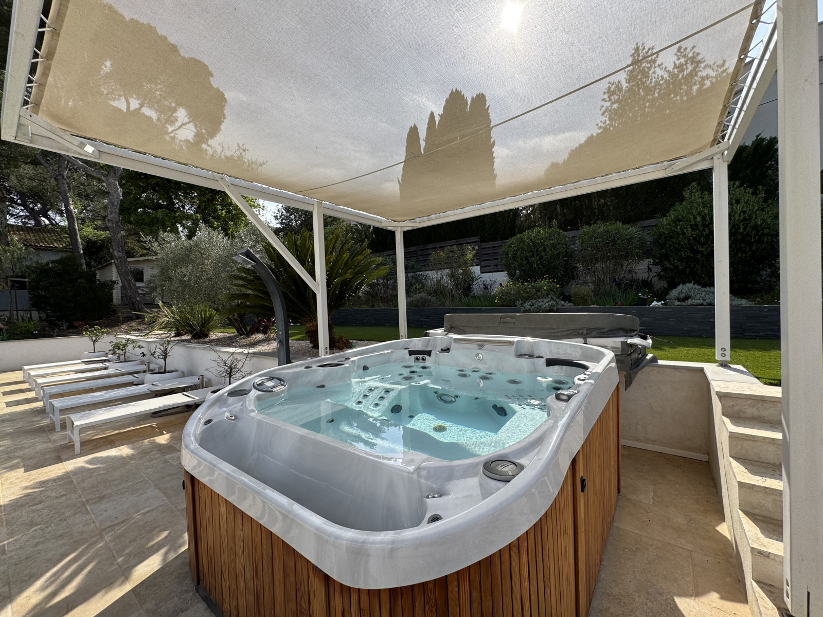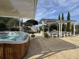 Située dans un quartier résidentiel prisé du Brusc, à proximité immédiate des commerces et des plages, cette superbe villa entièrement rénovée vous séduira par la qualité de ses prestations et ses volumes généreux. La maison offre un grand séjour lumineux et traversant ouvrant sur l'extérieur par des baies vitrées à galandage. La cuisine équipée moderne et fonctionnelle dispose d'une arrière cuisine attenante. Au RDC vous trouverez également une suite parentale avec SDE ainsi que des WC indépendants pour les visiteurs. A l'étage, l'espace nuit comprend deux autres suites avec SDE et un dortoir bénéficiant de sa salle d'eau privative, idéal pour accueillir famille et amis. Sous la terrasse de la maison se trouve une zone de stockage, pratique pour y ranger de l'outillage et des effets personnels. Les extérieurs sont à la hauteur du bien : magnifique piscine sécurisée par un volet roulant, jaccuzzi 6 places, terrain de pétanque, le tout sur une parcelle de 1279 m² entièrement clôturée, équipée d'un portail automatique et d'un visiophone. Un bien rare sur le secteur alliant confort, modernité et qualité de vie.