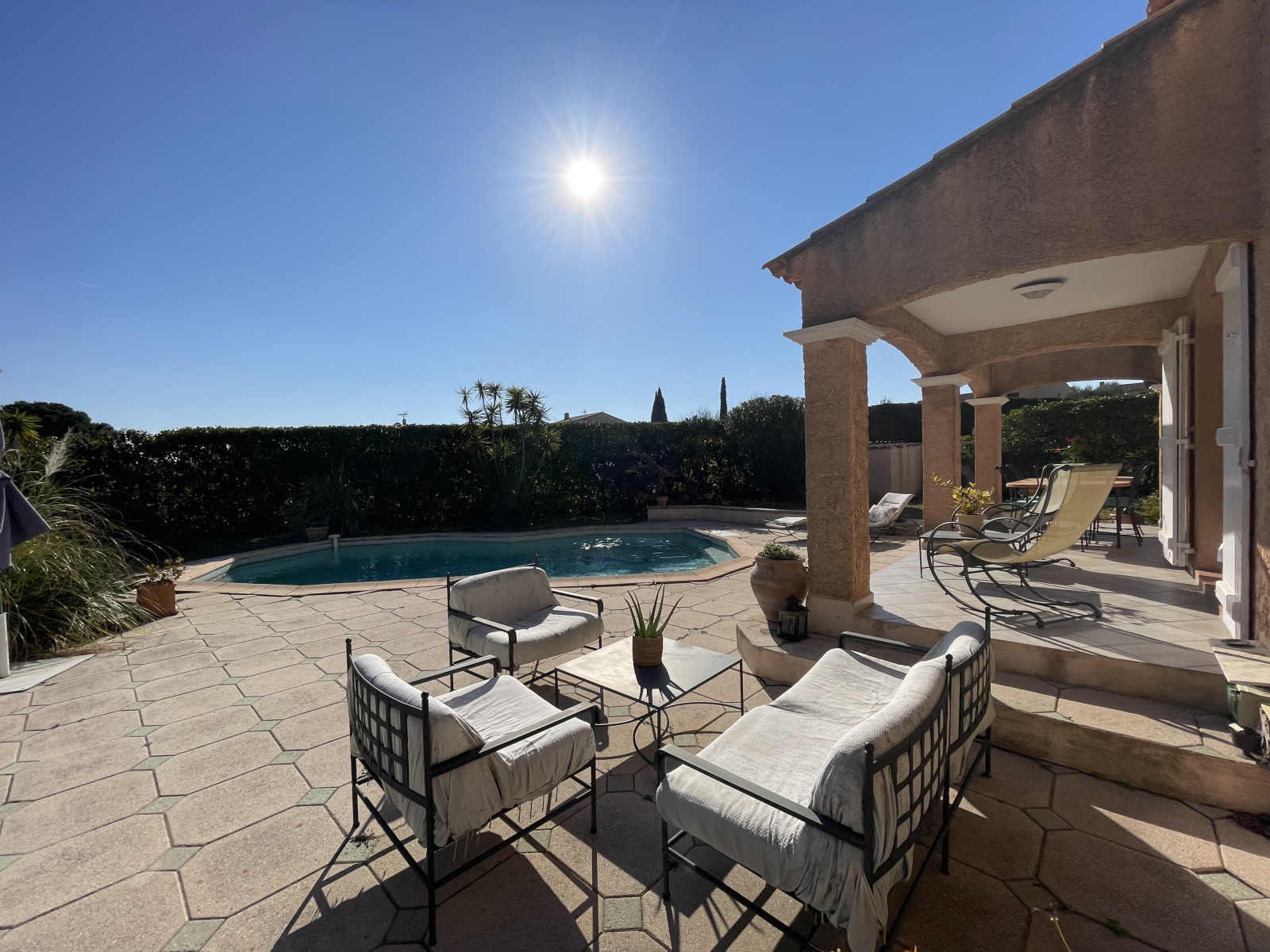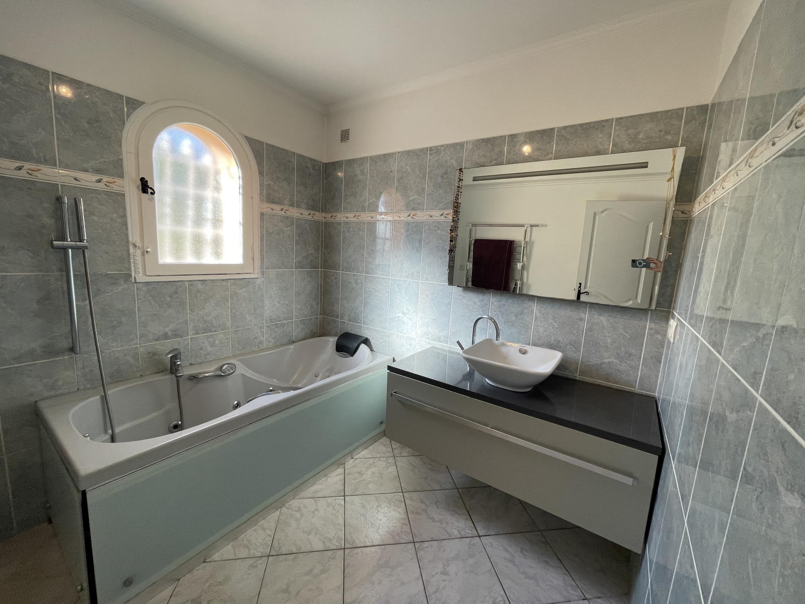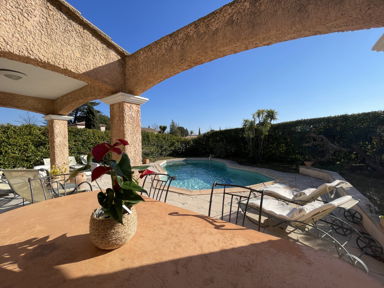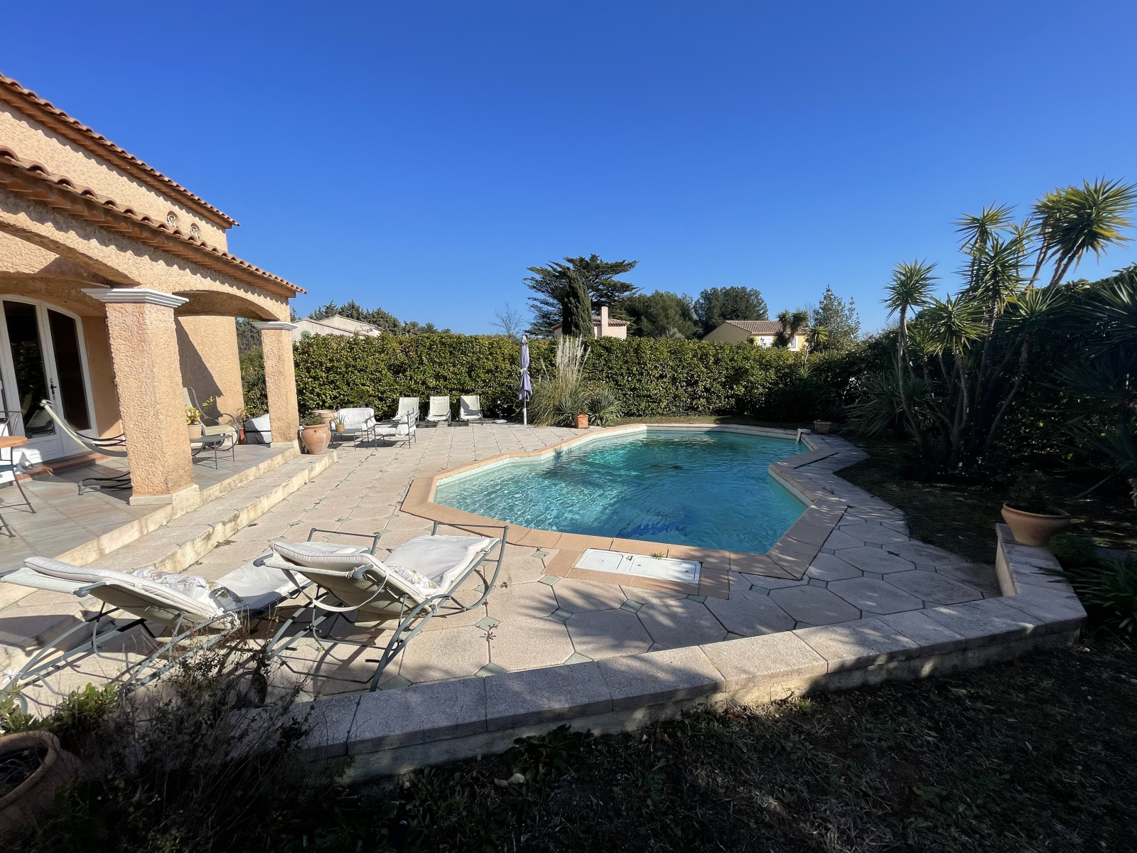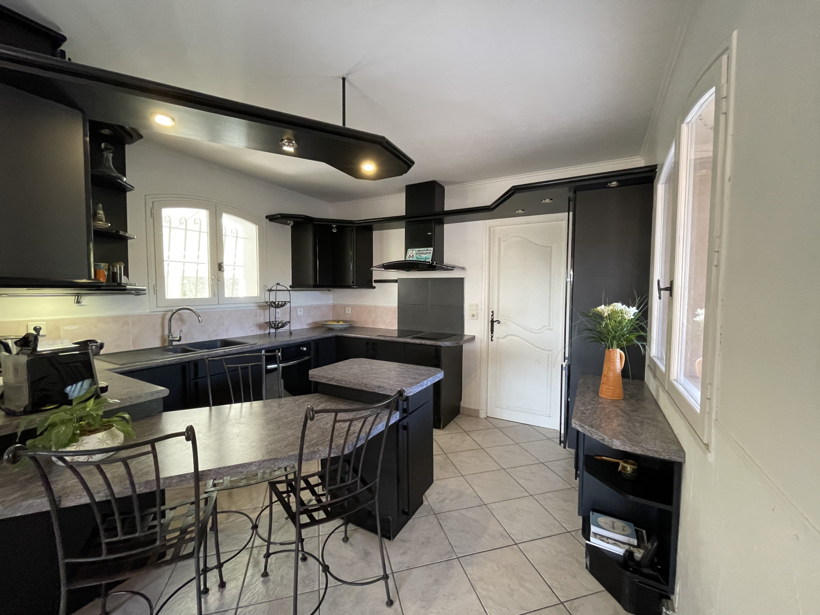Belle maison traditionnelle indépendante de type 6 dans un environnement calme et verdoyant. Elle offre de beaux volumes : séjour salon cheminée donnant sur terrasse Sud sans vis-à-vis, cuisine ouverte, une chambre de plain-pied avec bains, deux chambres avec salle de douche à l'étage dont une sur solarium et un large espace bureau pouvant être utilisé en chambre. Une piscine à l'abri des regards, de larges plages de détente et un garage complètent l'ensemble. Canal de Provence. A voir rapidement!