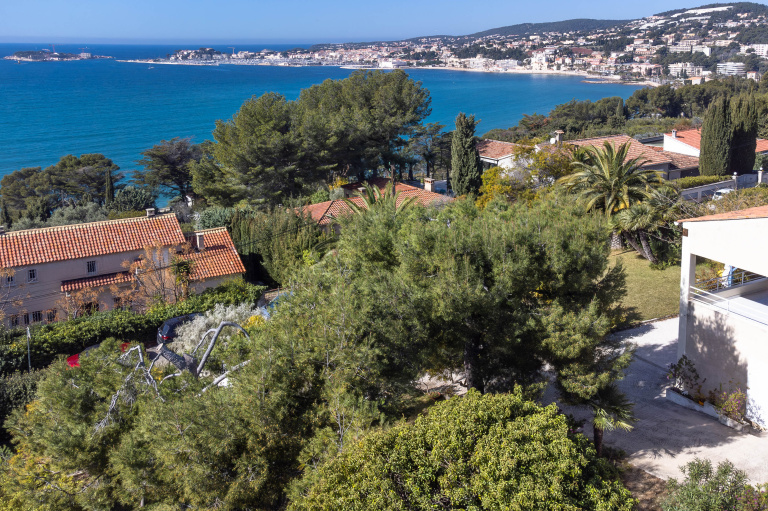 A 10 minutes à pied de la plage de la Gorguette, dans domaine privé sécurisé, venez découvrir cette grande propriété familiale édifiée sur un terrain clos de 1.775m² complanté d'essences méditerranéennes, avec très belle vue sur la baie de Bandol. D'une surface habitable de 225m², elle offre au niveau principal une spacieuse pièce de réception de plus de 62m² avec plafond "cathédrale" ouvrant par une large baie vitrée sur terrasse "vue mer" Sud-Ouest, cuisine sur terrasse Sud-Est, 2 chambres avec placards, salle de bains, salle de douche et wc. A l'étage, un espace bureau / bibliothèque ouvert sur le séjour et une chambre avec possibilité de solarium pour apprécier le magnifique panorama. En rez-de-jardin, vous profiterez d'une annexe composée d'un séjour, cuisine, 2 chambres avec placards, bureau, salle de bains et wc. Une cave, un atelier et un garage complètent l'ensemble.