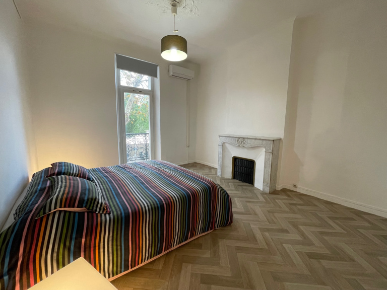 TOULON CENTRE - A proximité immédiate de la gare, spacieux appartement T5 de 107m² situé au 1er étage d'un immeuble de la fin du XIXème siècle. Il se compose d'un hall d'entrée, séjour / salon donnant sur balcon, cuisine équipée ouverte, 3 grandes chambres, bureau, salle de bains, dressing (poss. de recréer une salle de douche supplémentaire) et 2 wc. Vous serez séduits par son agencement, ses volumes et sa belle hauteur sous plafond (3,15m). Une cave et un vaste espace de rangement commun complètent l'ensemble.