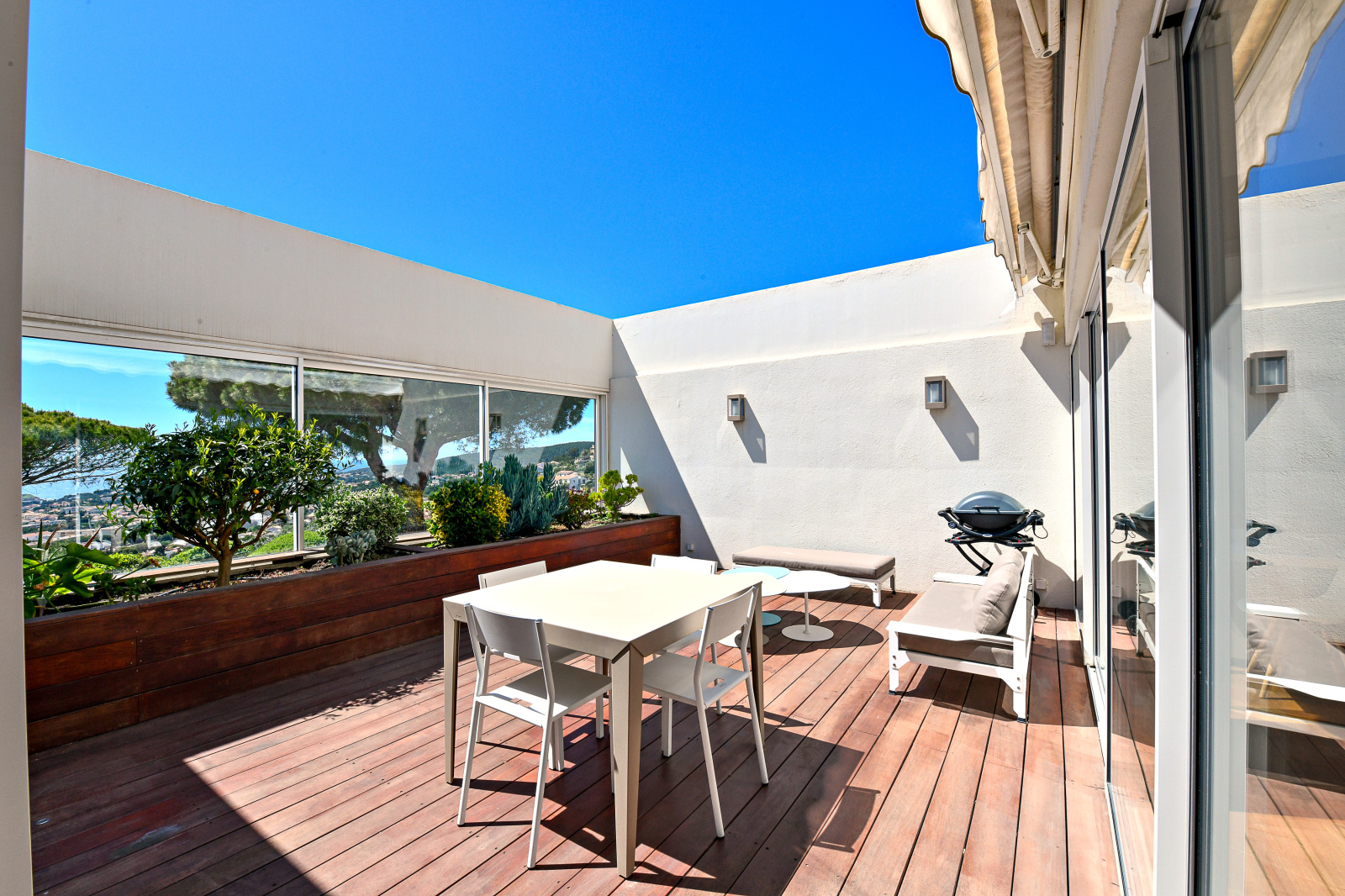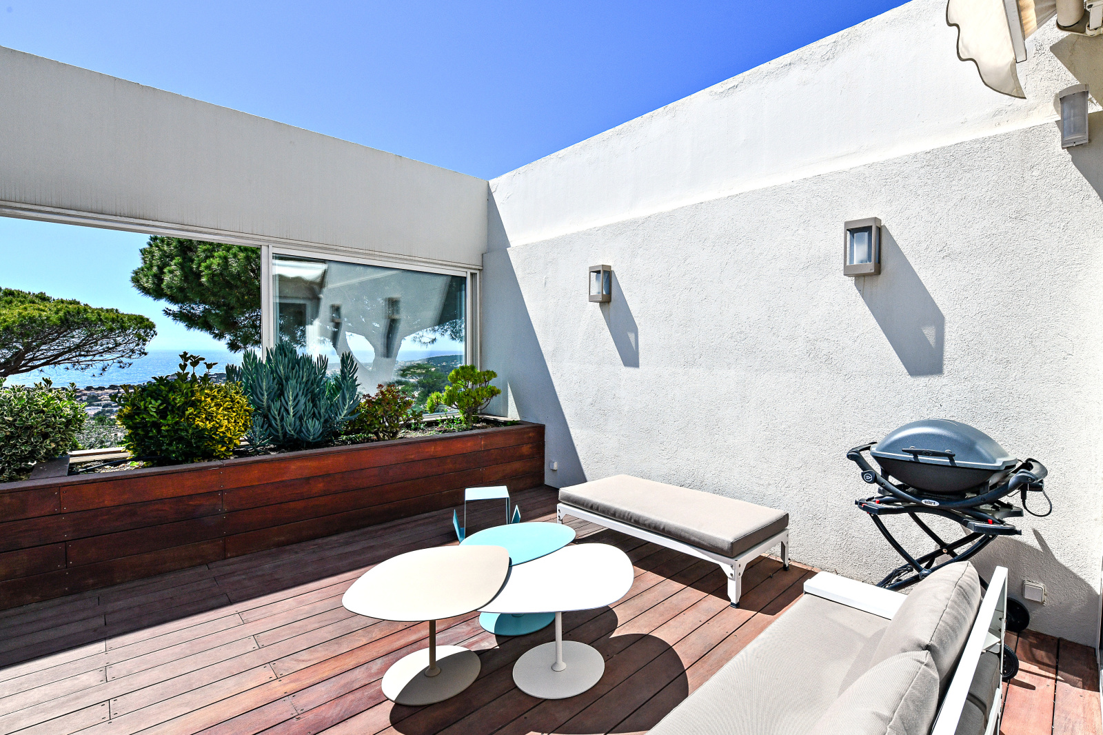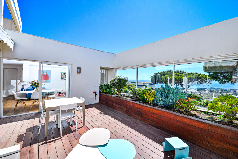 En position dominante, avec très belle vue sur la baie de Bandol, venez découvrir ce magnifique appartement T3 de 102m² hab. (83m² loi Carrez) vendu meublé, au sein d'une résidence de standing avec gardien et piscine. Vous serez séduits par son bel espace salon - salle à manger ouvert sur une grande terrasse exposée Sud-Ouest, cuisine ouverte entièrement équipée prolongée par une buanderie, 2 chambres dont une suite parentale avec dressing et salle de bains; salle de douche, vestaire et toilettes. Parking aisé pour plusieurs véhicules. Un grand garage disposant de l'eau et l'électricité est disponible en sus au prix de 40.000€.