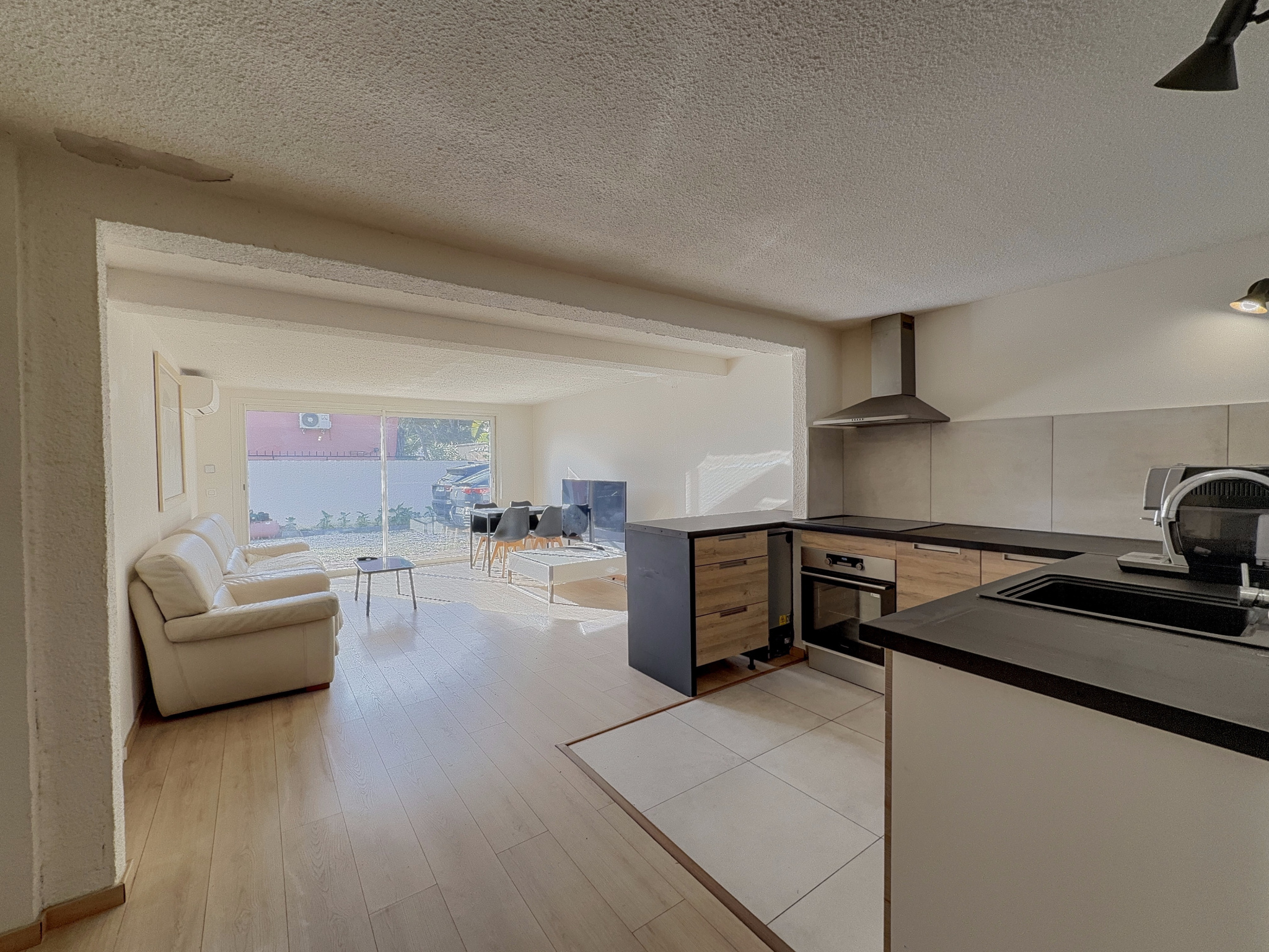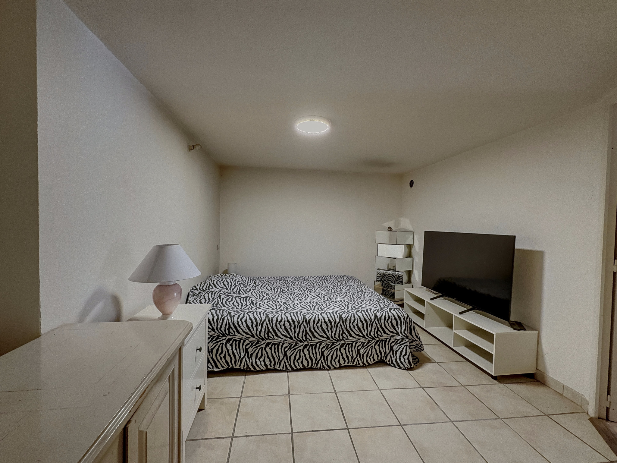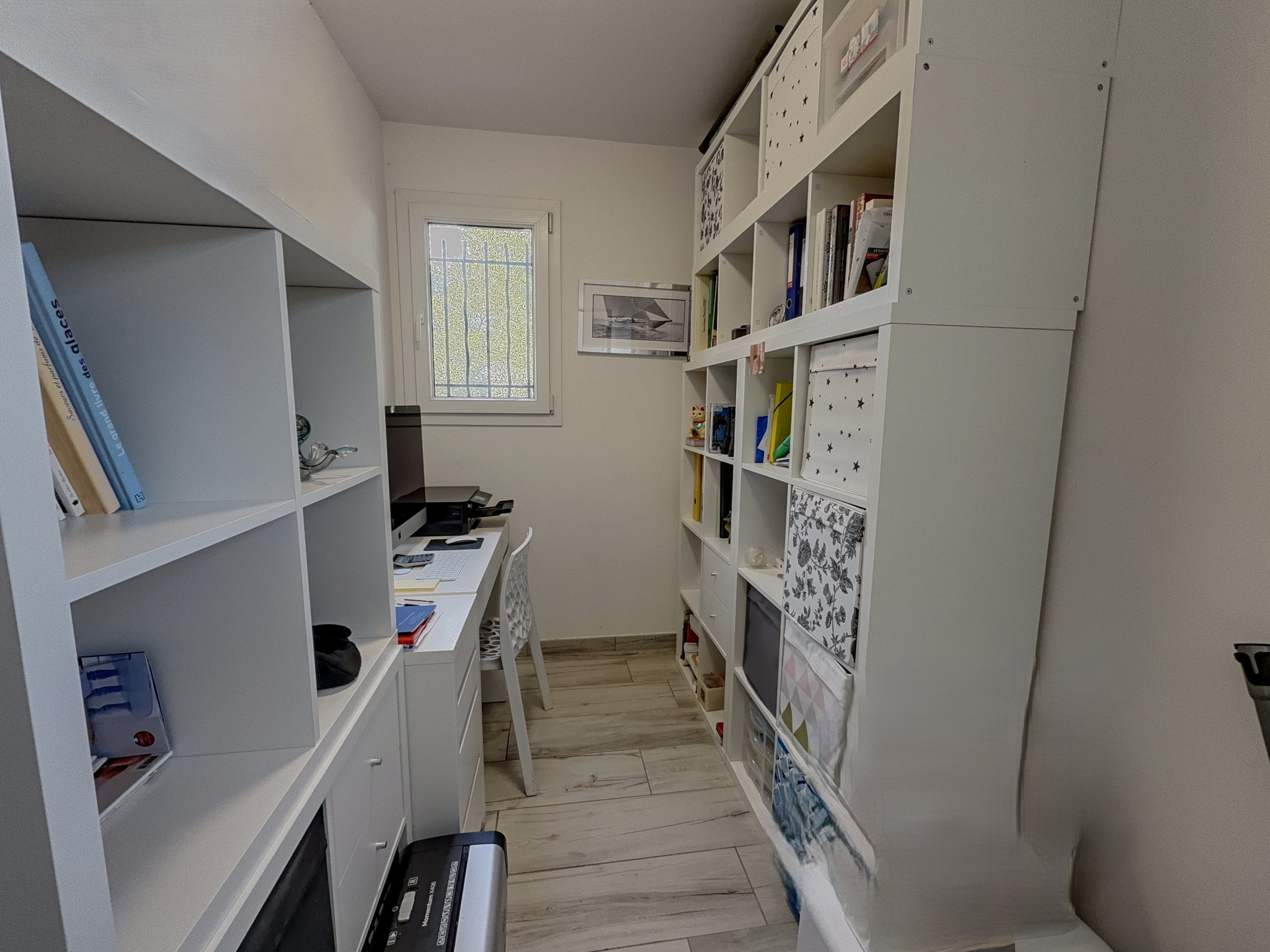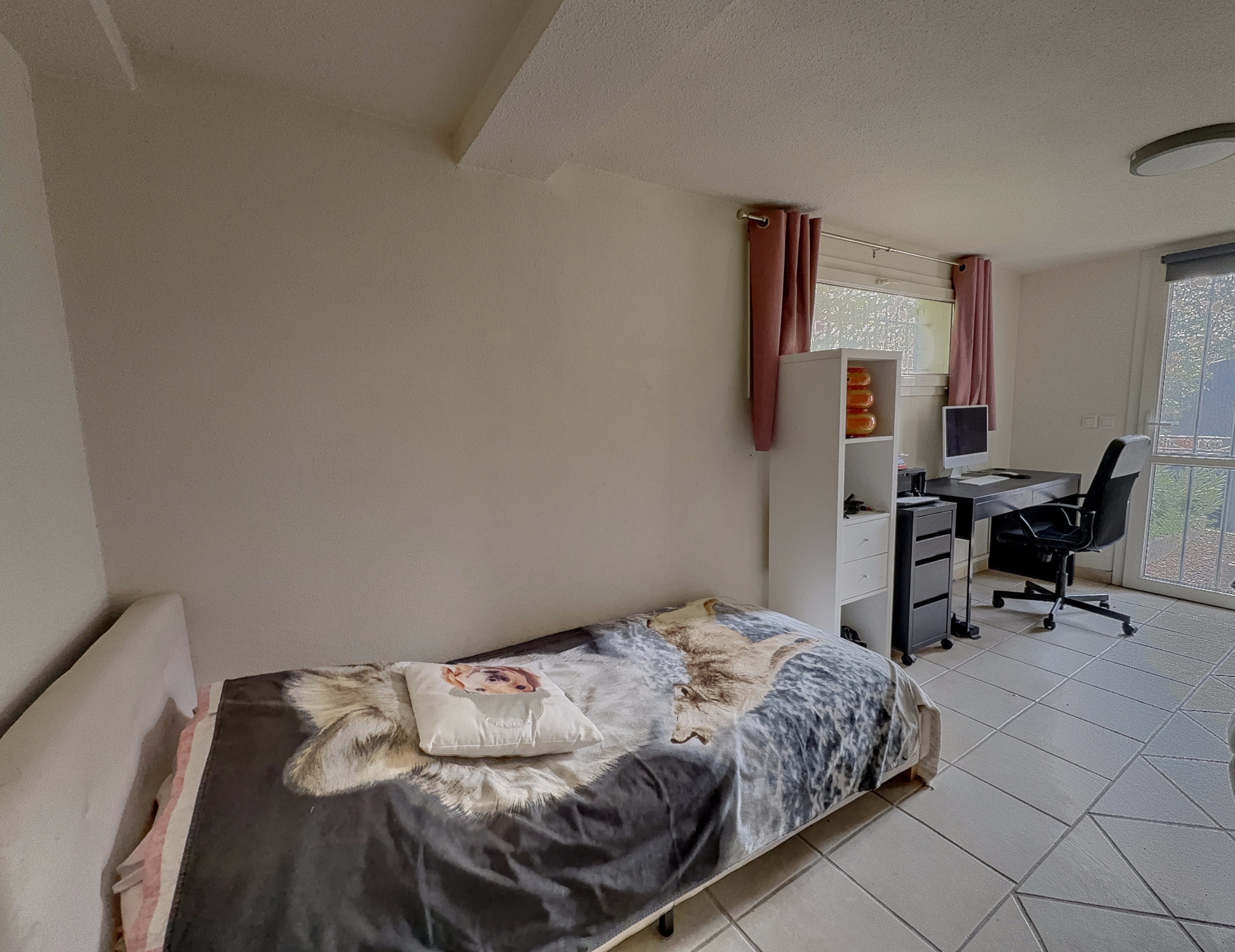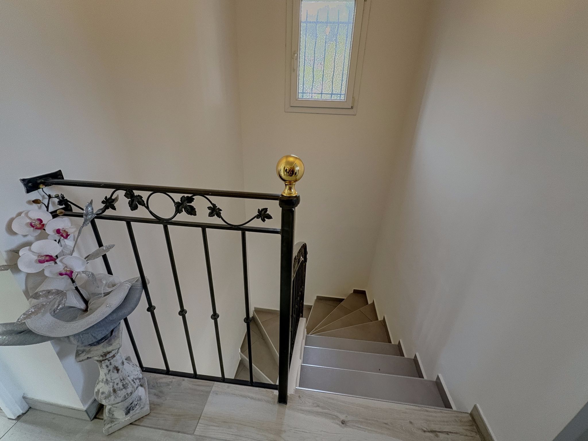 Au rez-de-chaussée, la maison se compose d'une agréable pièce à vivre lumineuse ouvrant sur une grande terrasse de 40 m² exposée sud, ainsi que d'un WC indépendant. A l'étage, vous découvrirez 2 chambres, un bureau, une spacieuse salle de douche avec WC, offrant un espace nuit fonctionnel et confortable. En sous-sol, un ancien garage a été aménagé en appartement comprenant 2 chambres dont une avec salle de douche, un WC séparé, ainsi que 2 débarras et un cellier, parfait pour accueillir famille, amis ou générer un revenu locatif. L'ensemble est implanté sur une parcelle de 415 m² entièrement clôturée, permettant de stationner 4 véhicules et 2 autres devant la villa. Prestations : climatisation, menuiseries en PVC ou alu double vitrage, forage. Un bien rare à découvrir sans tarder!