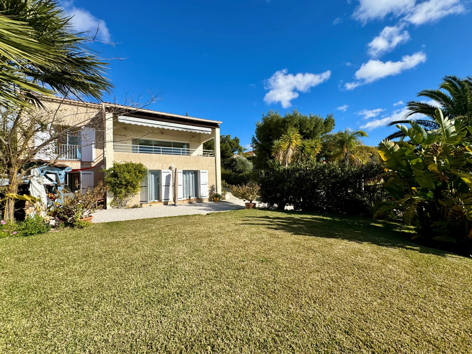 Sanary-sur-Mer (83110)A 10 minutes à pied de la plage de la Gorguette, dans domaine privé sécurisé, venez découvrir cette grande propriété familiale édifiée sur un terrain clos de 1.775m² complanté d'essences méditerranéennes, avec très belle vue sur la baie de Bandol. D'une surface habitable de 225m², elle offre au niveau principal une spacieuse pièce de réception de plus de 62m² avec plafond "cathédrale" ouvrant par une large baie vitrée sur terrasse "vue mer" Sud-Ouest, cuisine sur terrasse Sud-Est, 2 chambres avec placards, salle de bains, salle de douche et wc. A l'étage, un espace bureau / bibliothèque ouvert sur le séjour et une chambre avec possibilité de solarium pour apprécier le magnifique panorama. En rez-de-jardin, vous profiterez d'une annexe composée d'un séjour, cuisine, 2 chambres avec placards, bureau, salle de bains et wc. Une cave, un atelier et un garage complètent l'ensemble.