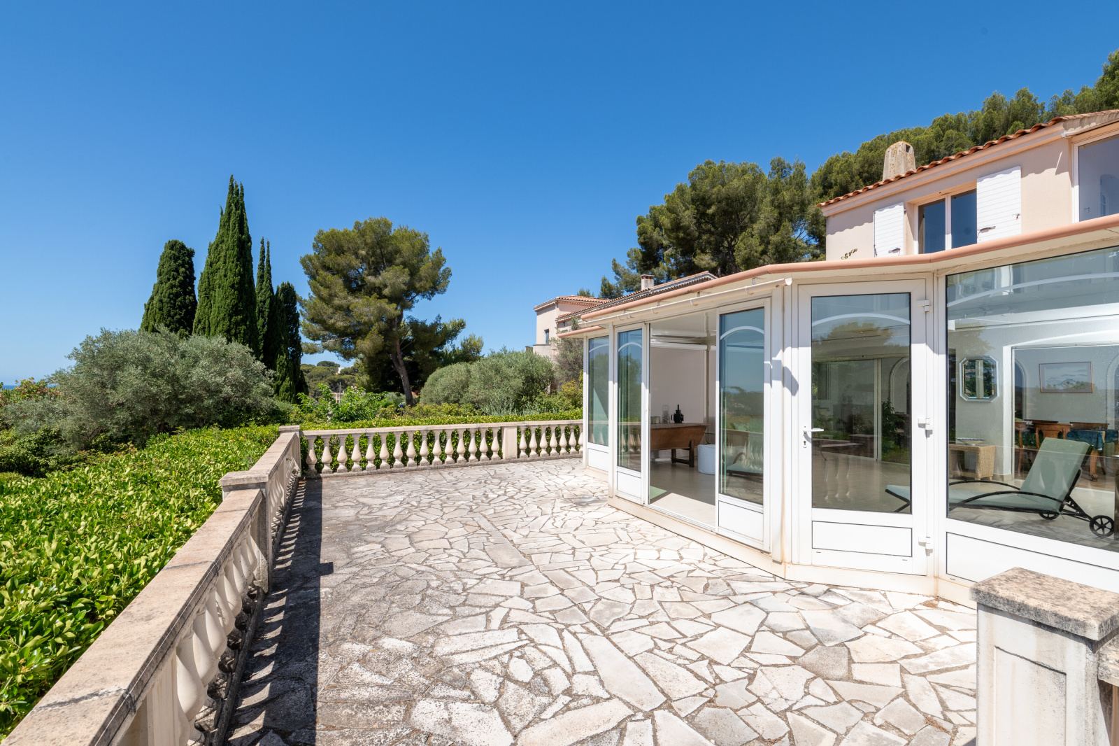 Sanary-sur-Mer (83110)En position dominante, à seulement quelques minutes à pied du port et du marché de Sanary, cette propriété offre un cadre de vie conjuguant confort et authenticité. Édifiée sur un terrain paysager de 1800 m², la maison développe environ 300 m² habitables et séduit dès les premiers instants par la qualité de sa construction, la générosité de ses volumes et sa vue imprenable sur la mer. La pièce à vivre, particulièrement spacieuse, s’articule autour de plusieurs espaces : un salon d’hiver avec une remarquable hauteur sous plafond, un séjour chaleureux avec cheminée, une cuisine semi-ouverte moderne et très bien équipée, dotée d’un coin repas, ainsi qu’une arrière-cuisine attenante. L’ensemble est prolongé par une véranda qui bénéficie elle aussi d’un magnifique panorama sur la mer. Le rez-de-chaussée abrite également deux chambres confortables, une salle de bains et des toilettes indépendants. À l’étage, une grande pièce lumineuse avec vue mer s’ouvre sur une terrasse. Elle peut être aménagée en salon, bureau ou reconfigurée pour créer deux chambres supplémentaires selon les besoins. Ce niveau comprend également une belle suite composée d’une chambre et d’une salle de bains privative. L’étage peut facilement constituer un appartement indépendant. Véritable atout de la propriété : un espace bien-être baigné de lumière, composé d'une piscine intérieure chauffée et d'un sauna, dont on peut profiter toute l'année. La propriété dispose par ailleurs de nombreuses commodités extérieures : un vaste espace de stationnement permettant d’accueillir plusieurs véhicules, un garage, un carport, ainsi que de nombreux espaces de rangement et une cave à vin. Situé dans un secteur recherché pour sa proximité du port et sa position dominante avec vue mer, cette propriété rare par ses volumes et son potentiel représente une opportunité exceptionnelle à Sanary.